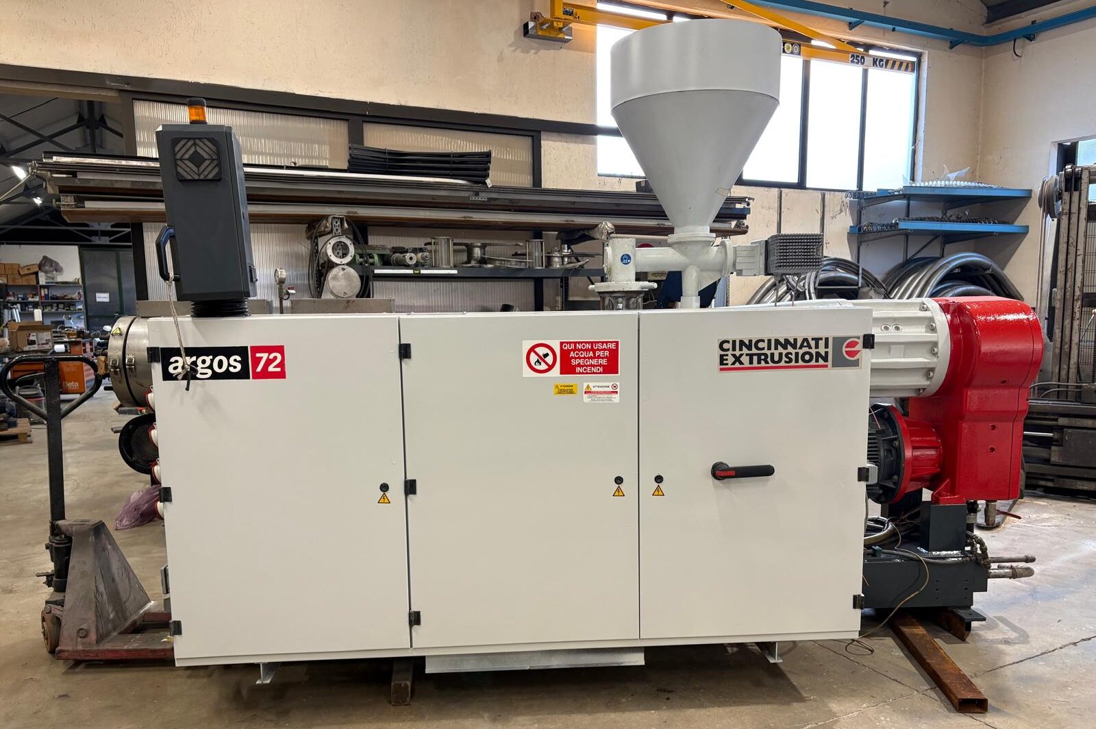 Parallel twin screw extruder Cincinnati Argos72R-28D for pipe or technical profile...